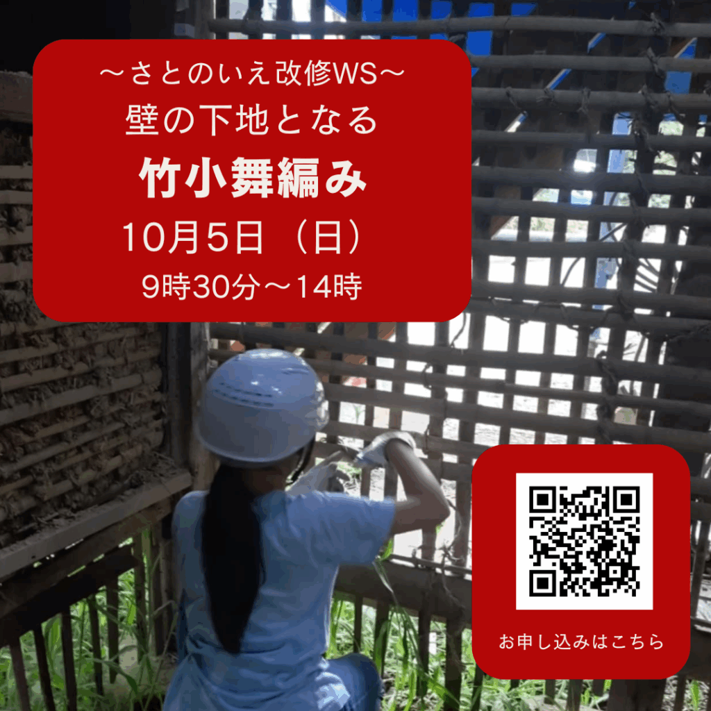 大阪のてっぺん能勢、もうだるような暑さに包まれた8月31日。古民家を改めた【さとのいえ】に、3歳の子どもからベテランまで幅広い世代の精鋭が集まりました。この日は、柱が立った家に息吹を吹き込むように、竹小舞づくりの準備がス […]