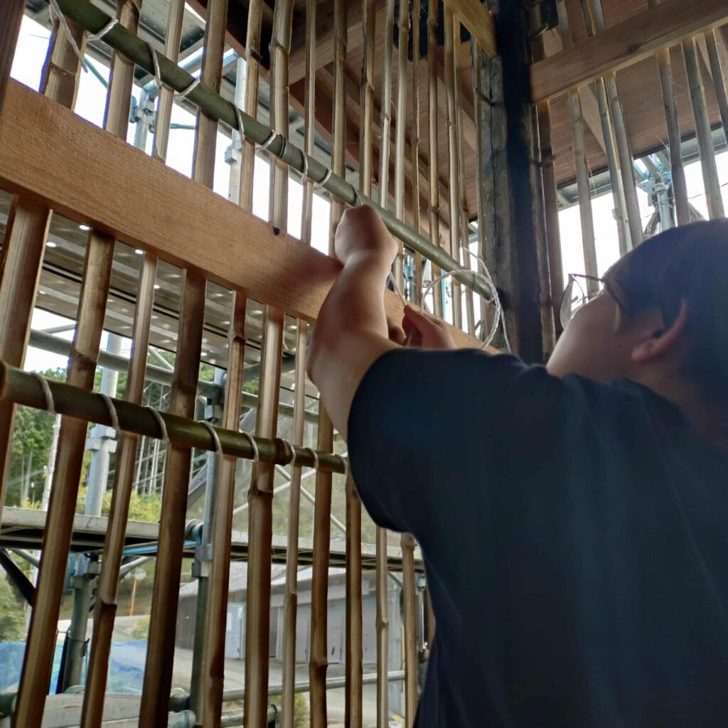 【まなぶ】竹小舞編み始まりました!柱が立ち、屋根がかかり、家らしくなってきた大工作業も一段落。ここからはいよいよ左官作業の始まりです。 まずは「竹小舞(たけこまい)」という日本の伝統的な工法で、割った竹を格子状に組み、土壁の下地を作っていきます。左官職人 […]