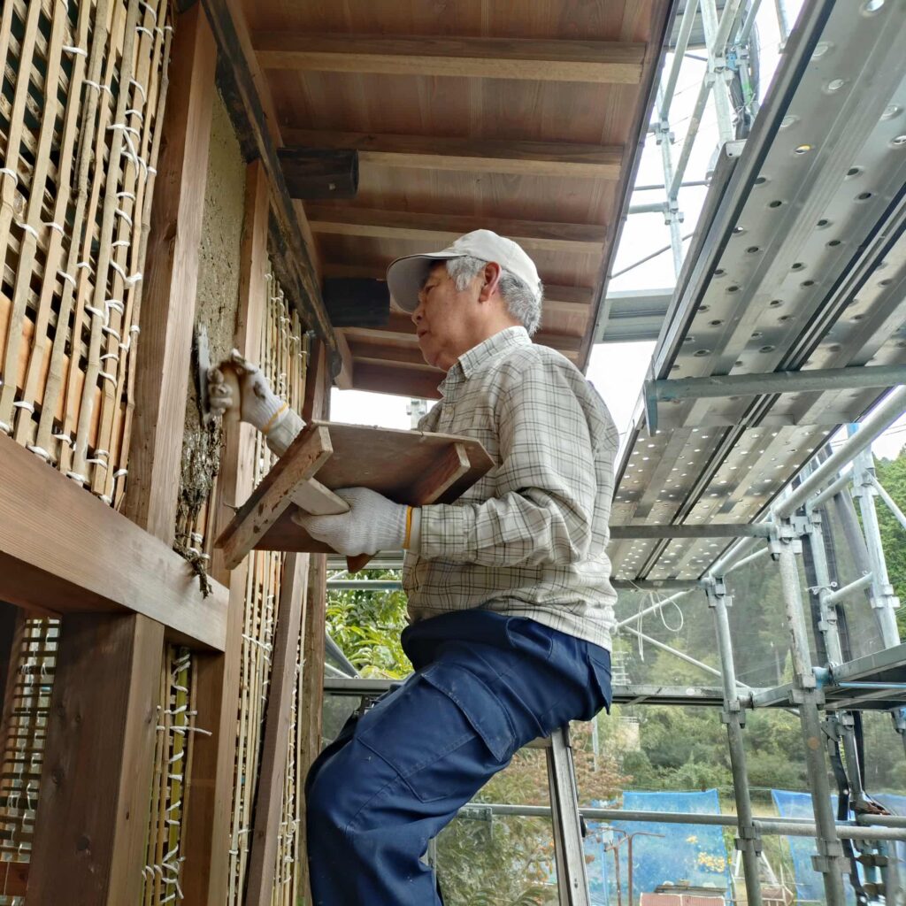 左官職人による外壁塗りの作業が始まりました。職人さんは、重たい土を片手で持ち、コテに載せて壁に塗りつけていきます。見ていると簡単そうに見えますが、実際にはかなりの力で土を押し込んでいることが、コテの音から伝わってきました […]