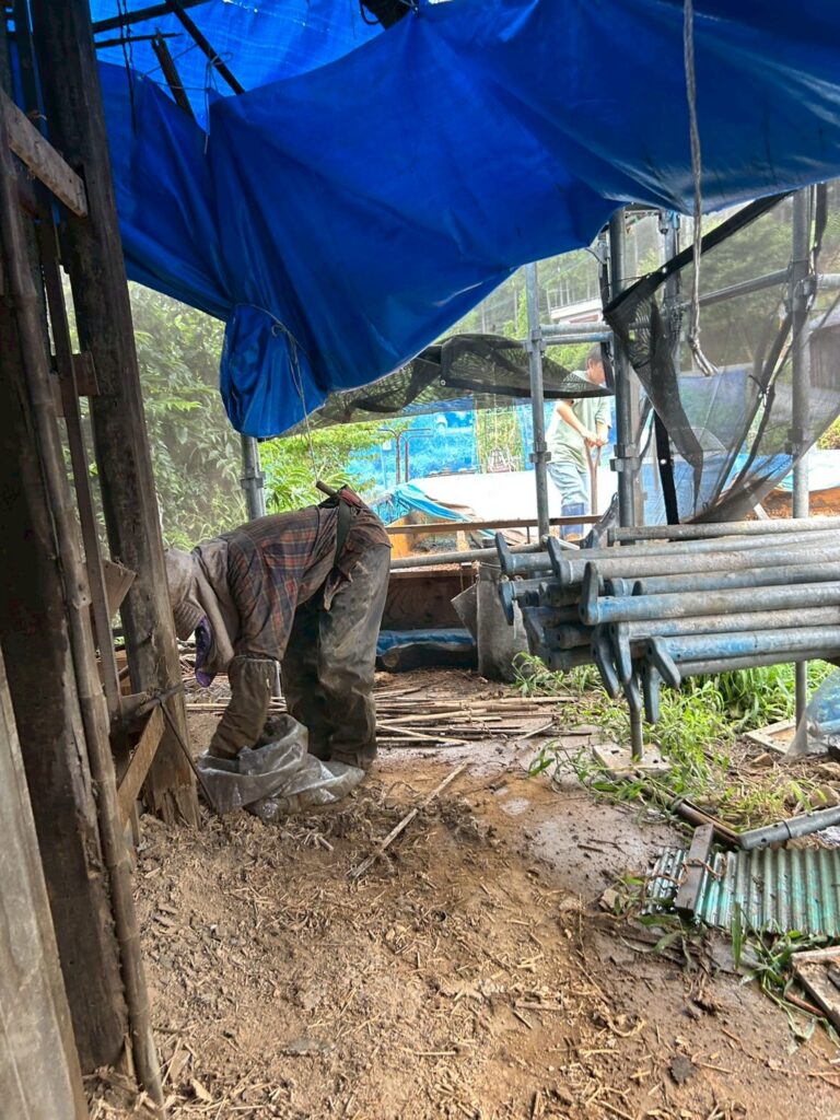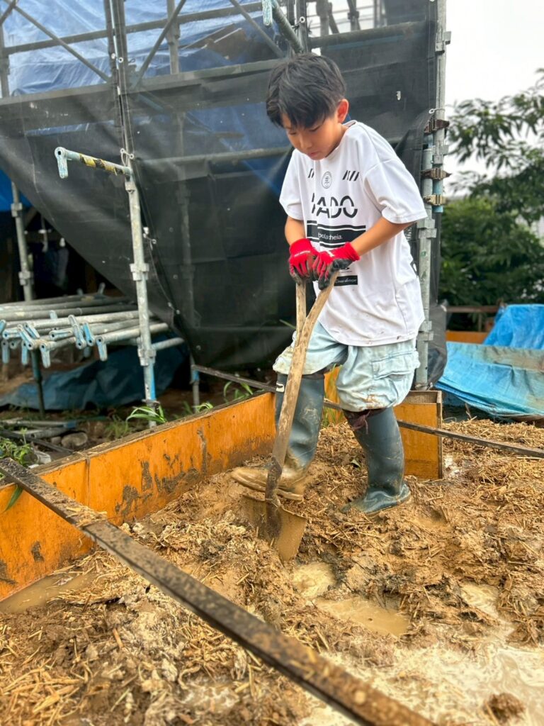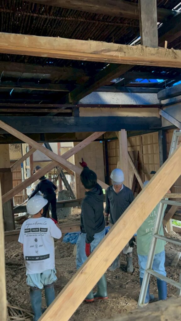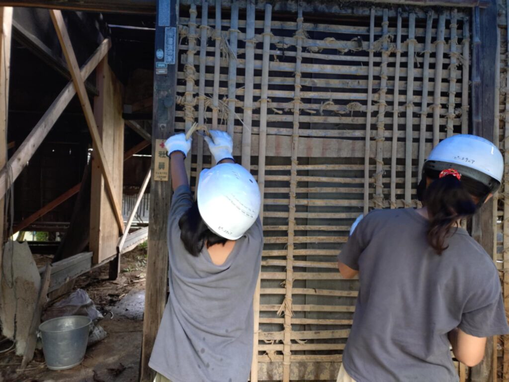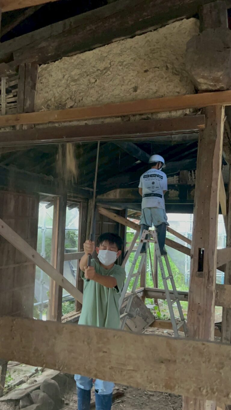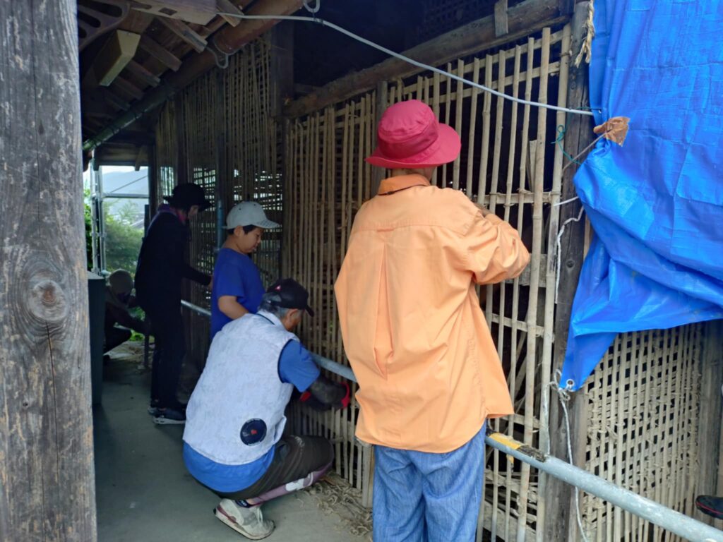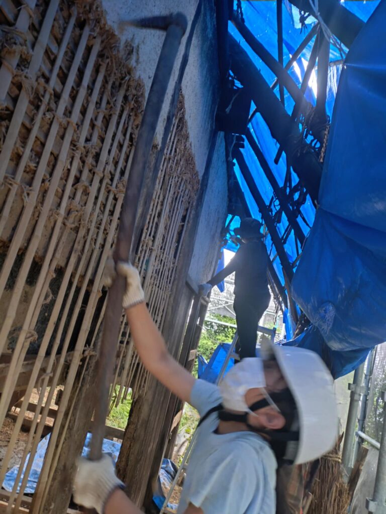 その前に、職人さんと一緒に竹小舞を外しました。いよいよ次のステップへ!